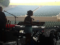 Back home to the Bay Area! It hit a high of 111° on Tuesday afternoon. It was so hot that we could barely even do a sound check. We ran through 2 songs and raced back to the refuge of the subterranean dressing rooms. I don’t usually sweat on stage (I’m a tropical type, and like it warm), but tonight? I was drenched. I felt sorry for the people in the audience who experienced near heat stroke conditions. My poor mom and uncle were suffering badly. My mom usually dances the entire concert. I don’t recall having seen her dance at all tonight.